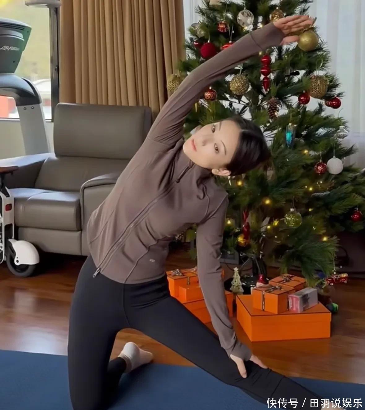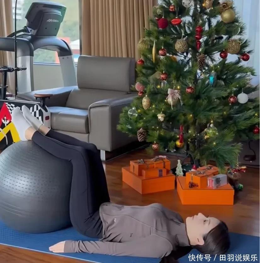 视频中方媛在家里还穿着厚厚的高领毛衣,疑似体寒,在客厅里已经摆放了一颗米高的巨型圣诞树,看来已经提前为过节做准备了。