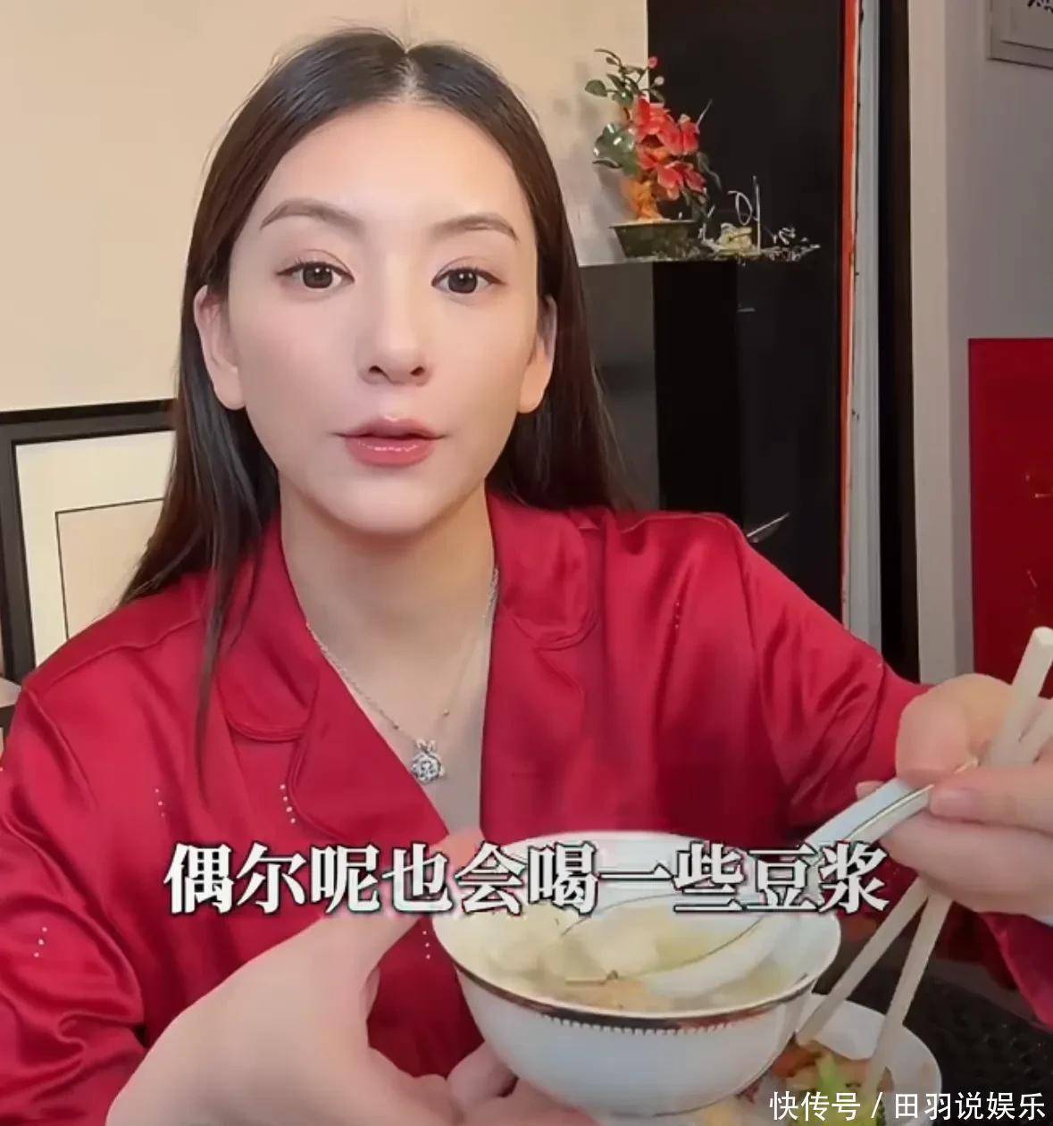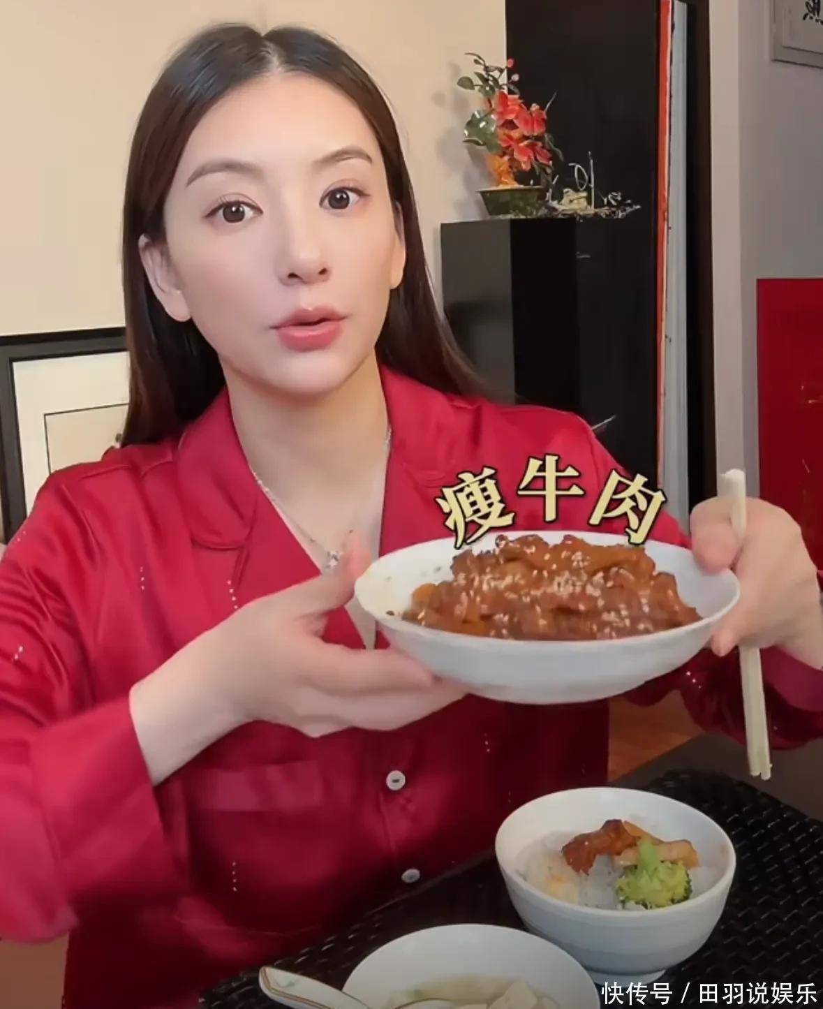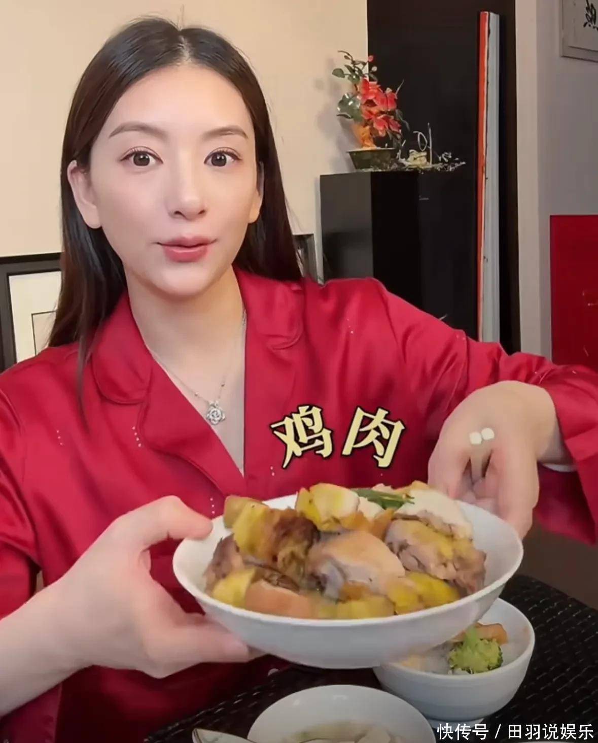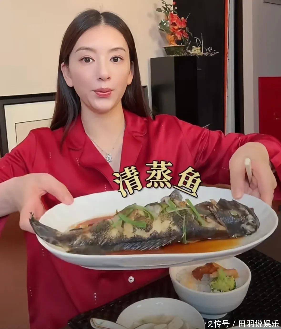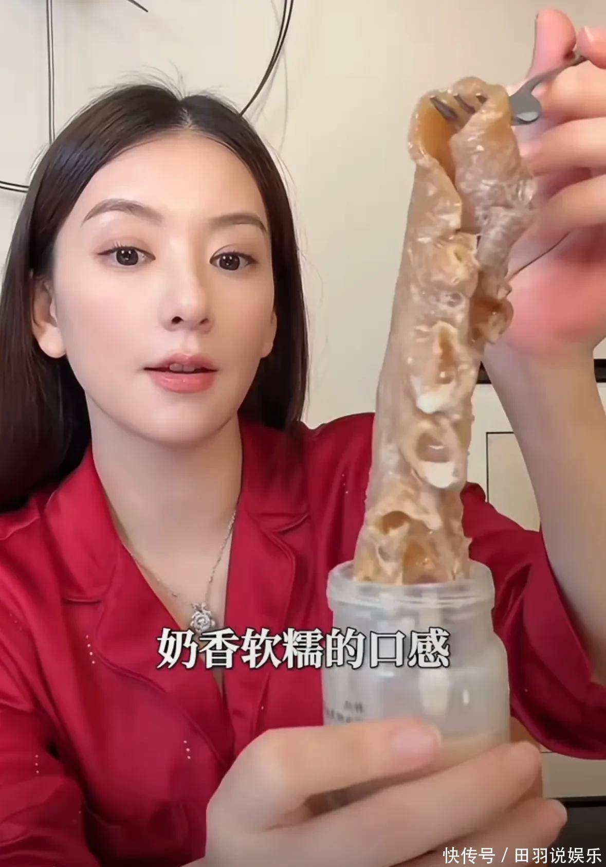 方媛透露除了吃正餐以外,每天还会喝奶,补充钙片,还会吃一大张比脸还大的花胶。